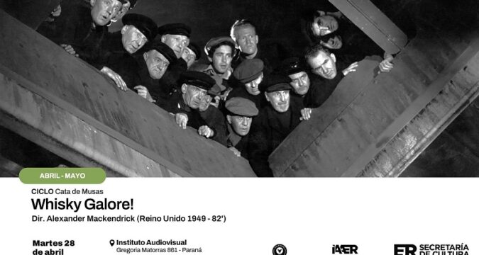 El ciclo cinematográfico «Cata de Musas» continúa este martes 28 de abril en la ciudad de Paraná con la proyección de Whisky Galore! (1949), ópera prima del director Alexander Mackendrick. La función se realizará a las 20:00 en la Sala Noble, ubicada en Matorras 861, con acceso libre y gratuito. La iniciativa es organizada por el Instituto Audiovisual de Entre Ríos (IAAER), dependiente de la Secretaría de Cultura provincial.